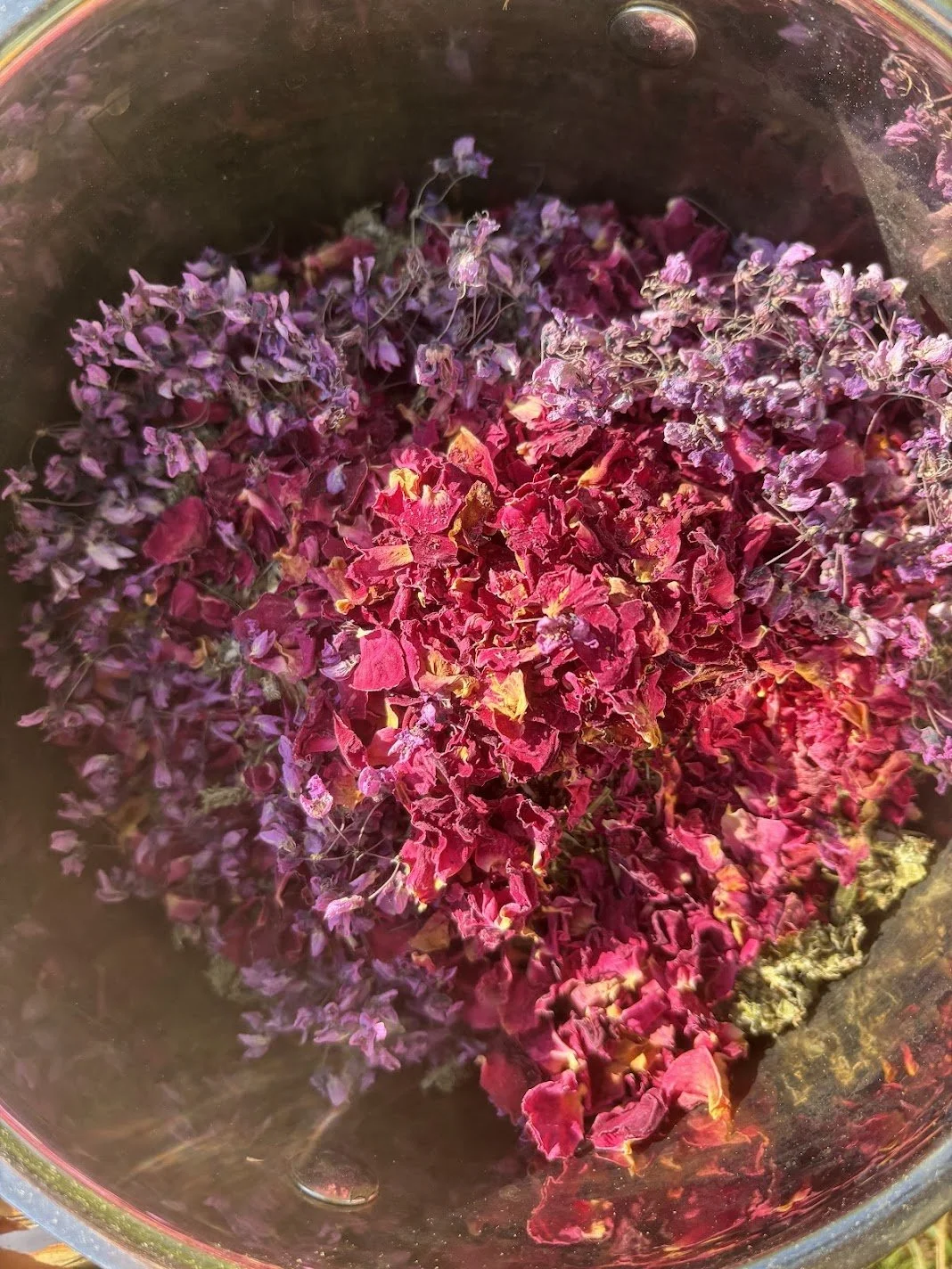 The plants used are honorably harvested inspired by Robin Wall Kimmerer in, Braiding Sweetgrass. Do not take more than 1/2, always ask permission, let none go to waste, and give a gift of gratitude. Or they are grown using organic methods including no use of pesticides, IPM in action, natural composts and fertilizers, etc. I source from farms that serve local economies and focus on growing smaller batches with higher potency. Each plant was harvested and made within the cycles of nature that would allow the greatest strength of extraction. Everything is curated with care, trialed, and extensively used before being released.
